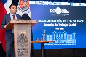 Durante la ceremonia, intervino el vicerrector de Administración y Finanzas, Álex Paz, en representación de la Rectoría, quien hizo hincapié en que la Escuela de Trabajo Social sintoniza con los valores de la PUCV, en particular con su rol social. “Para la universidad este es un hito muy importante, puesto que la Escuela de Trabajo Social contribuye enormemente a su desarrollo institucional, principalmente con el sello de vocación pública que la caracteriza”, comentó.